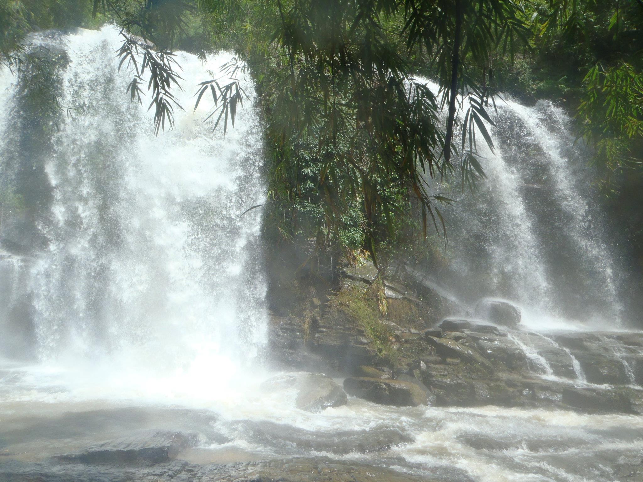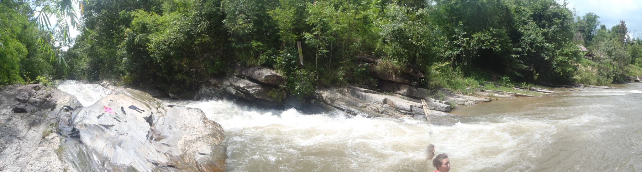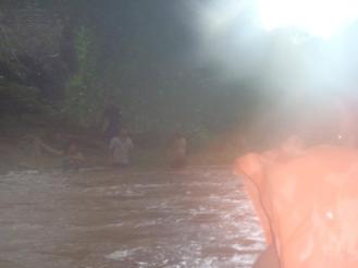 With the intense heat and humidity, and beginning to run out of water, we were ecstatic to come by a second waterfall. This waterfall ran down the river to where we decided we would swim. Ignorantly, we didn’t take into account that the rainfall during this season created a strong current in the fairly shallow river, so some of the girls were shocked when they jumped into the river from the bamboo bridge and got dragged right down to the other side of the river. After that, we stayed near the shallow edge, though it was impossible to stand in the same place due to the pull of the water.