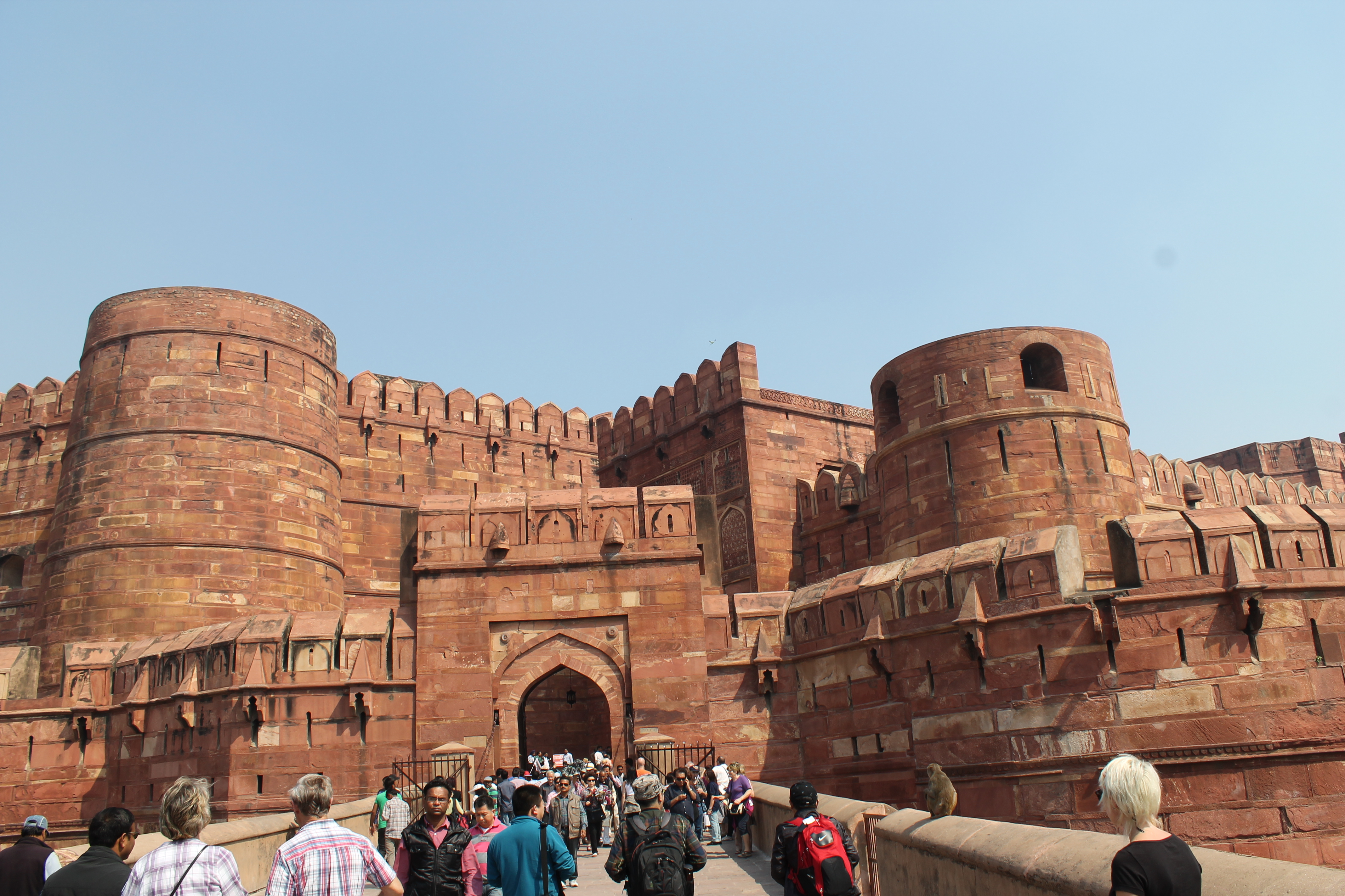 It is truly awe-inspiring and a little difficult to leave. After spending a few hours walking round and taking photos, we headed to Agra Fort, another incredible ancient monument, in which the emperor, Shah Jahan is said to have been imprisoned when his son took over. The fort has an excellent view of the Taj Mahal, and beautiful surrounding area. We spent a couple of hours walking around before heading back to our guesthouse. As we booked out train for the following evening, we just missed the sunset, but sat up on our hostel’s rooftop with a coffee and enjoyed the view nevertheless.
