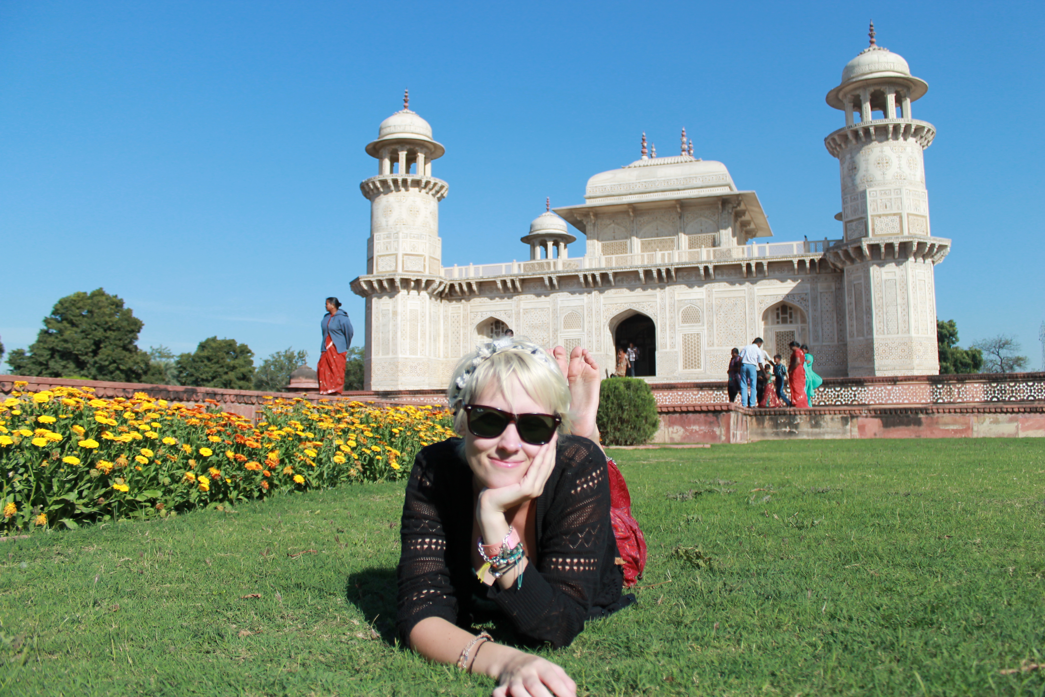 The following day, we visited the Baby Taj, which is quite a lot further away, in a different part of town. This cost 150 Rupees only, and was definitely worth a visit! Often regarded as a draft for the Taj Mahal, it bears a likely resemblance.. Being located along the bank of the YamunaRiver, it offers stunning views, where you can sit down and ponder for however long you like. We sat on the grass outside the main monument, and enjoyed some rays of sunshine, enjoying the tranquility of the place (although, I have to say the number of photos I had to take with Indian tourists, was a little too much for me). Baby Taj, the tomb of I’timad-ud-Daulah, was so small we were able to see it and stay for an hour and a half only, before heading back to our rickshaw driver who had waited for us outside.